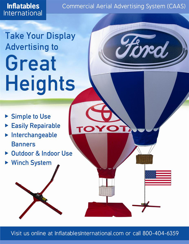 Utilizing rooftop balloons, blimps, tethered events and other inflatables is a great way to increase your brand's visibility.