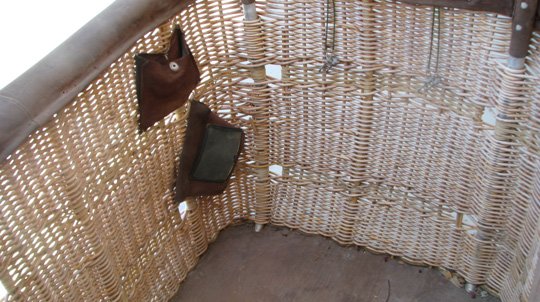 Description: Raven Rally Hot Air Balloon Basket. Airworthy. Good for use as a prop, or for photography. Can be cut in half for use in photographer’s studio.